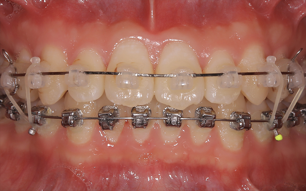 審美に影響する上顎前歯は白いセラミックブラケット、あまり目立たない下顎はメタルブラケットを標準としています。